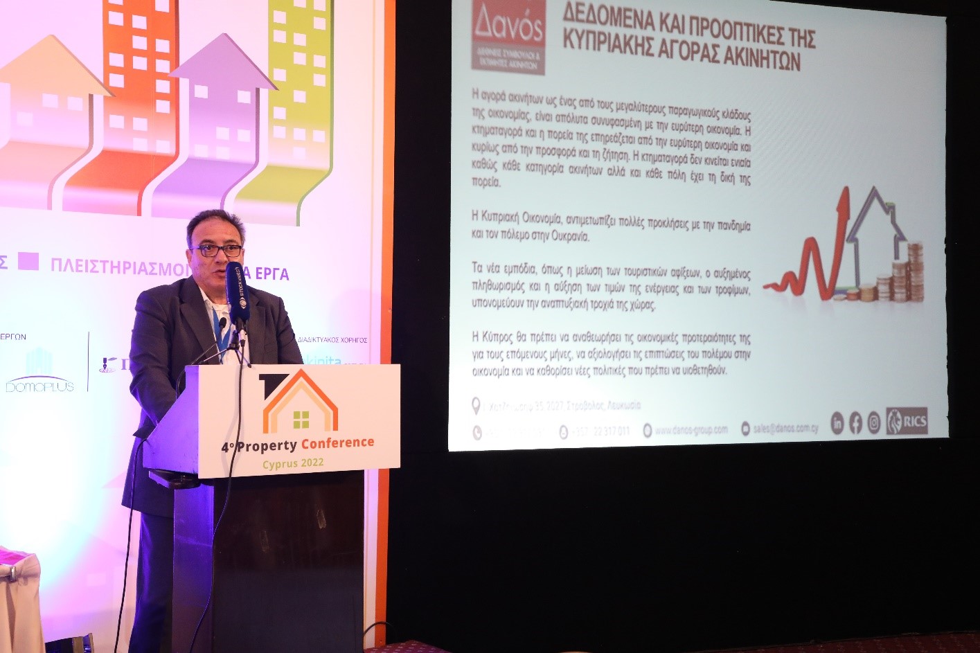 Ο Όμιλος ΔΑΝΟΣ – Διεθνείς Σύμβουλοι και Εκτιμητές Ακινήτων, ήταν χορηγός στο 4ο Property Conference 2022 – Το σήμερα και το αύριο των ακίνητων, που πραγματοποιήθηκε με μεγάλη επιτυχία την Παρασκευή 15 Απριλίου στο Ξενοδοχείο «ΚΛΕΟΠΑΤΡΑ» στη Λευκωσία. Διοργανωτής του Συνέδριου ήταν η εταιρεία FMW Financial Media Way.