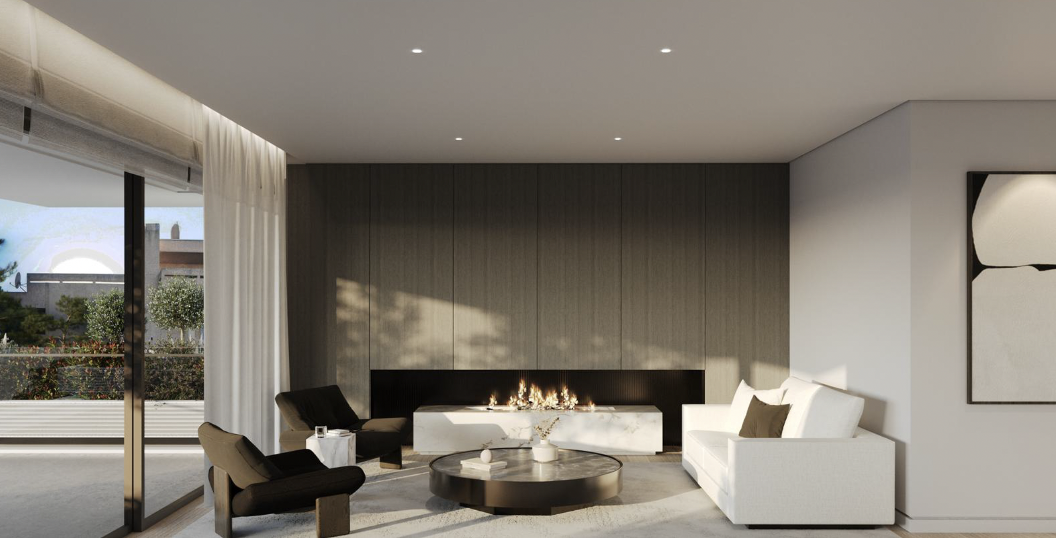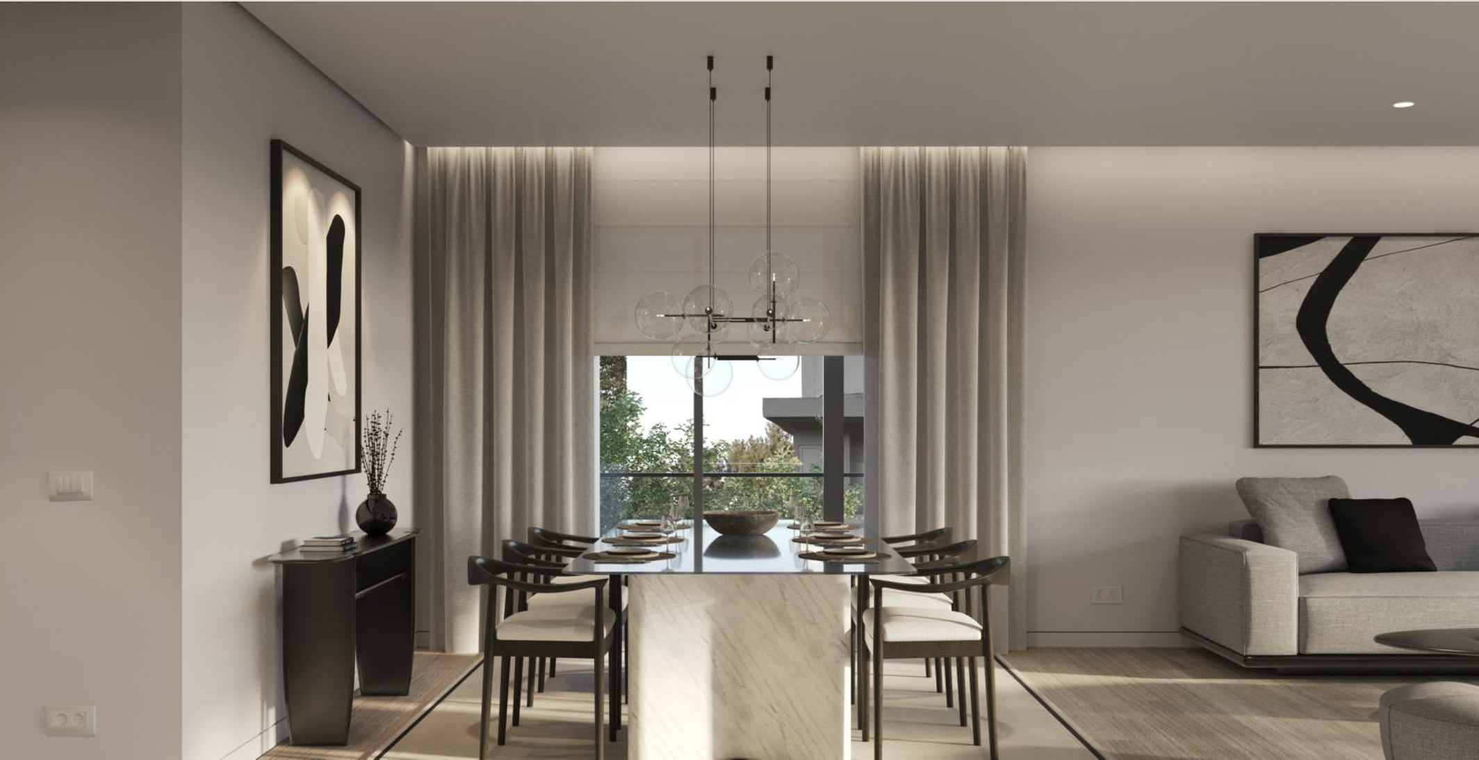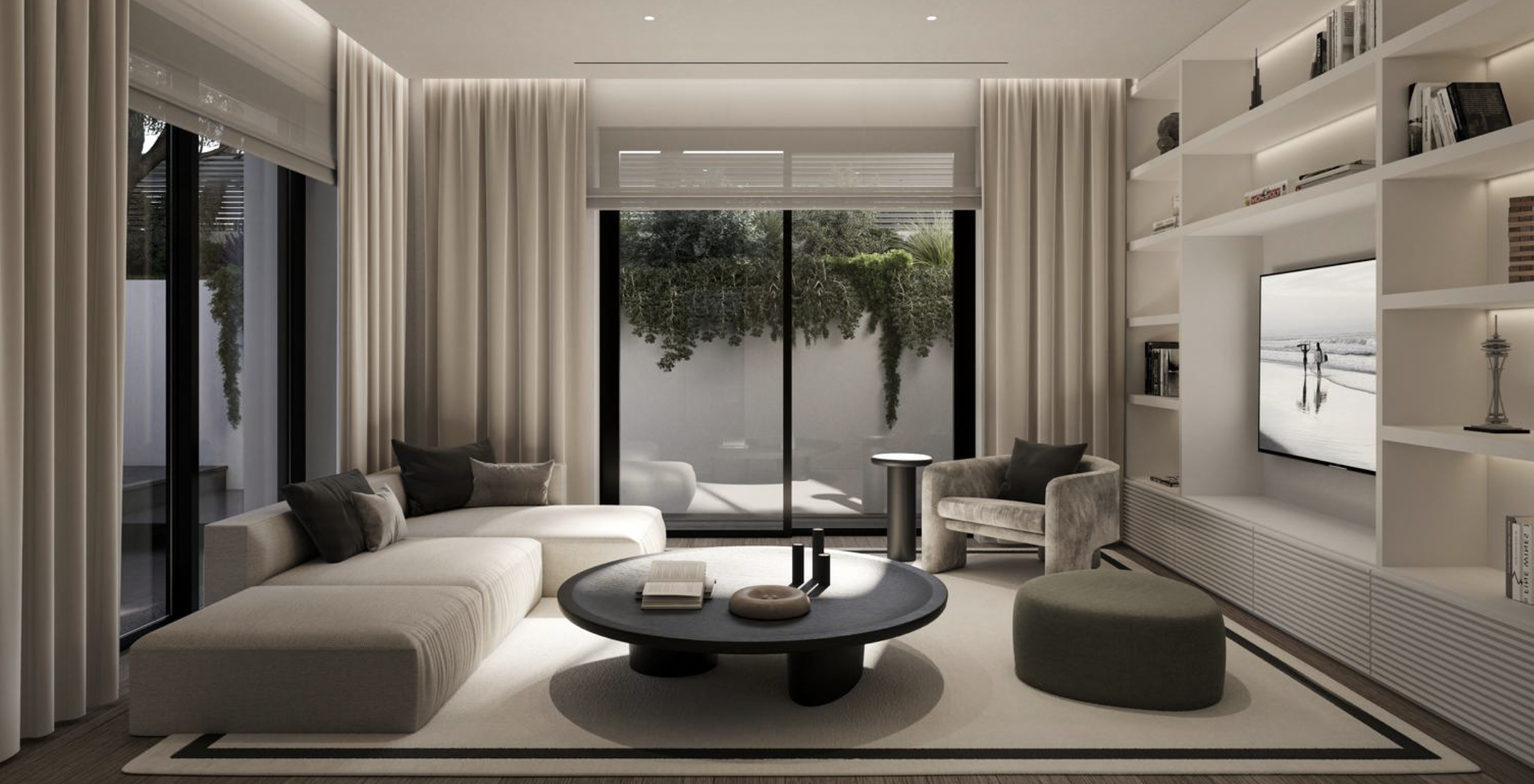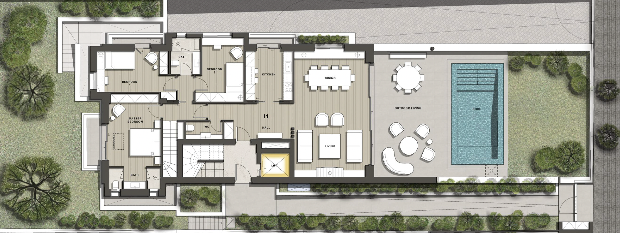 • Ισόγειο (158 τ.μ.) – Φωτεινό καθιστικό και τραπεζαρία με άμεση πρόσβαση στον κήπο και την ιδιωτική πισίνα, δημιουργώντας μια αρμονική σύνδεση μεταξύ εσωτερικού και εξωτερικού χώρου. Η κουζίνα είναι ανεξάρτητη, προσφέροντας πρακτικότητα και ιδιωτικότητα. Στο επίπεδο αυτό βρίσκονται επίσης δύο υπνοδωμάτια που μοιράζονται ένα μπάνιο, ένα master υπνοδωμάτιο με en-suite μπάνιο, καθώς και WC επισκεπτών.