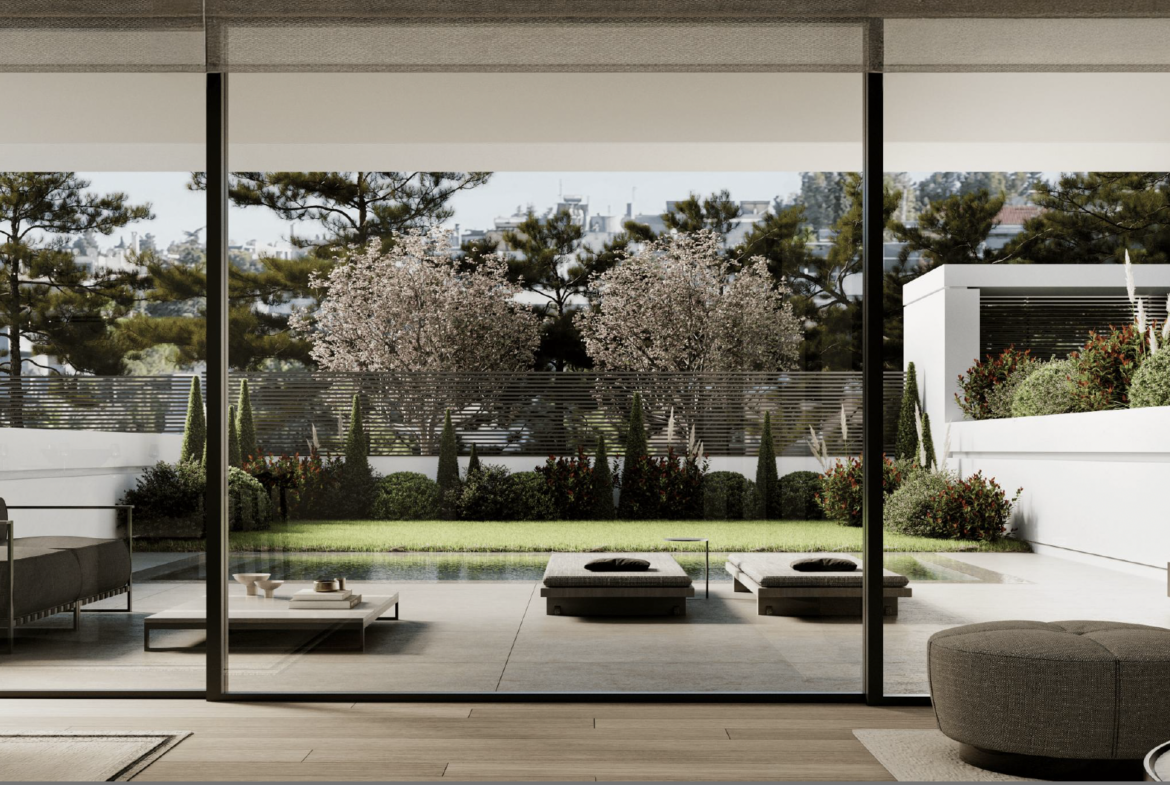 Ο ιδιωτικός κήπος περίπου 250 τ.μ. και σε συνδυασμό με την πισίνα, δημιουργεί ένα ήρεμο και ευχάριστο περιβάλλον εξωτερικής διαβίωσης. Η προσεγμένη φύτευση και οι άνετοι υπαίθριοι χώροι προσφέρονται για χαλάρωση, καθημερινή επαφή με το φυσικό στοιχείο και ποιοτικές οικογενειακές στιγμές, ενισχύοντας την αίσθηση άνεσης και ευεξίας.