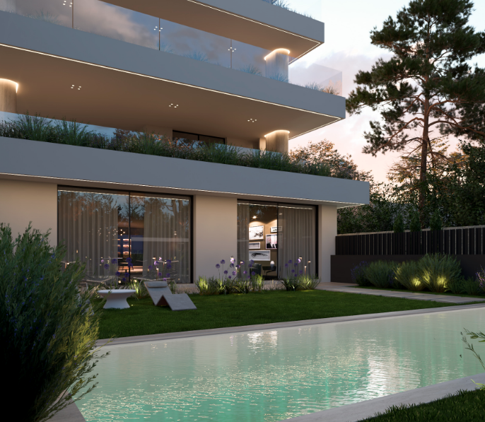 Το διαμέρισμα διαθέτει όμορφα διαμορφωμένο κήπο και ιδιωτική πισίνα 23,24 τ.μ., δημιουργώντας μια ήρεμη όαση μέσα στην πόλη. Διαμορφωμένοι χώροι χαλάρωσης και σκιερά καθιστικά προσφέρουν το ιδανικό σκηνικό για οικογενειακές στιγμές ή κομψές κοινωνικές συναθροίσεις.