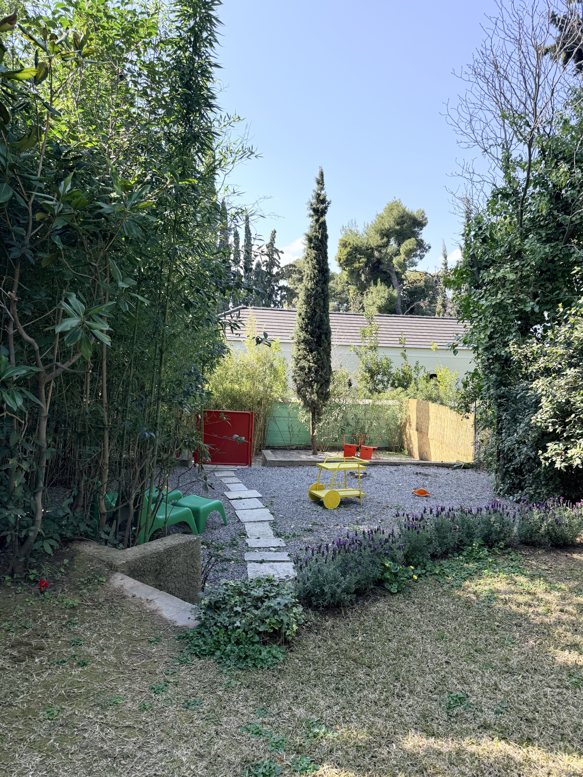• Ιδιωτικός κήπος 500 τ.μ. (σε διάφορα επίπεδα) με θέα σε κυπαρίσσια
