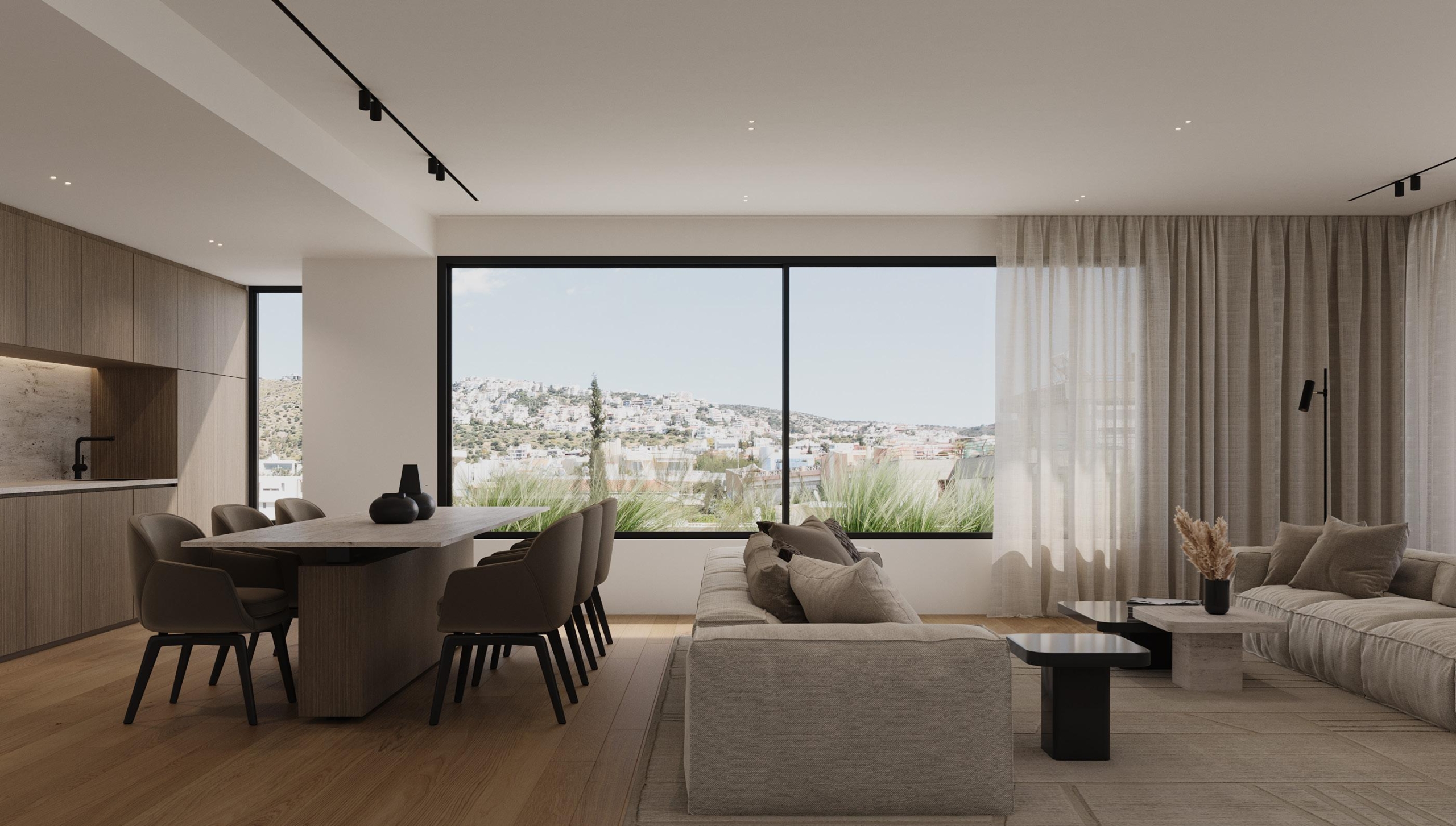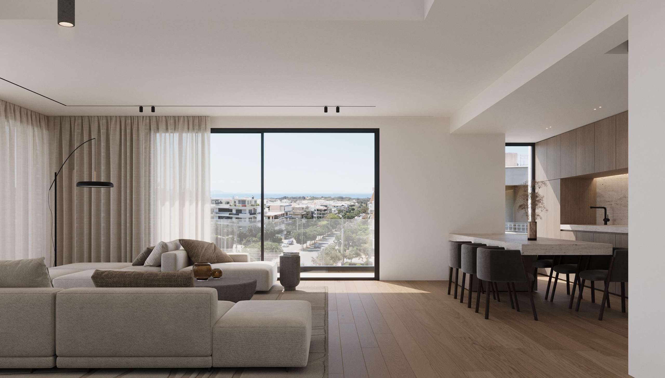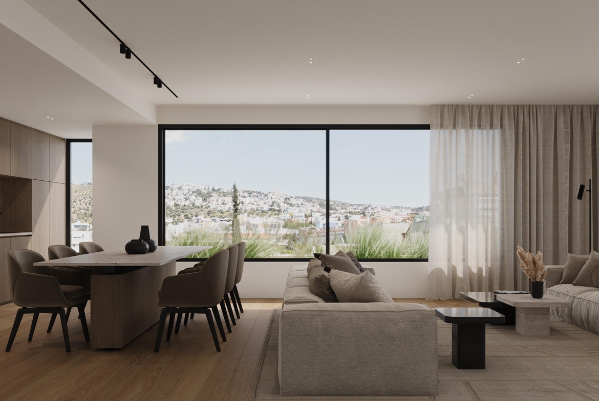 • Σχεδιασμός – Σύγχρονη αρχιτεκτονική, μεγάλες μπαλκονόπορτες και έξυπνη διαρρύθμιση που ενισχύουν την αίσθηση πολυτέλειας και ευρυχωρίας.