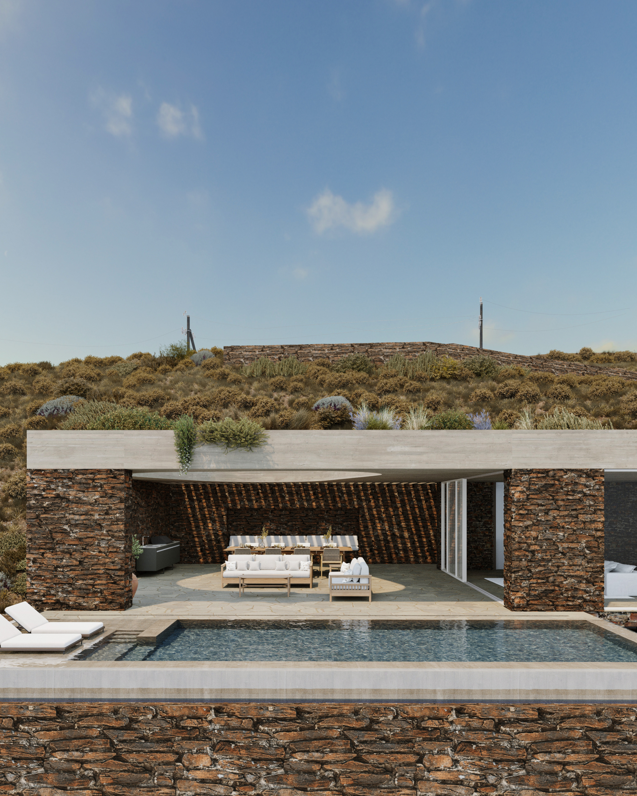 With a total living area of 238.47 sqm, this residence has been designed to offer an exceptional quality of life, combining comfort and functionality with refined aesthetics that honor the natural Cycladic topography.