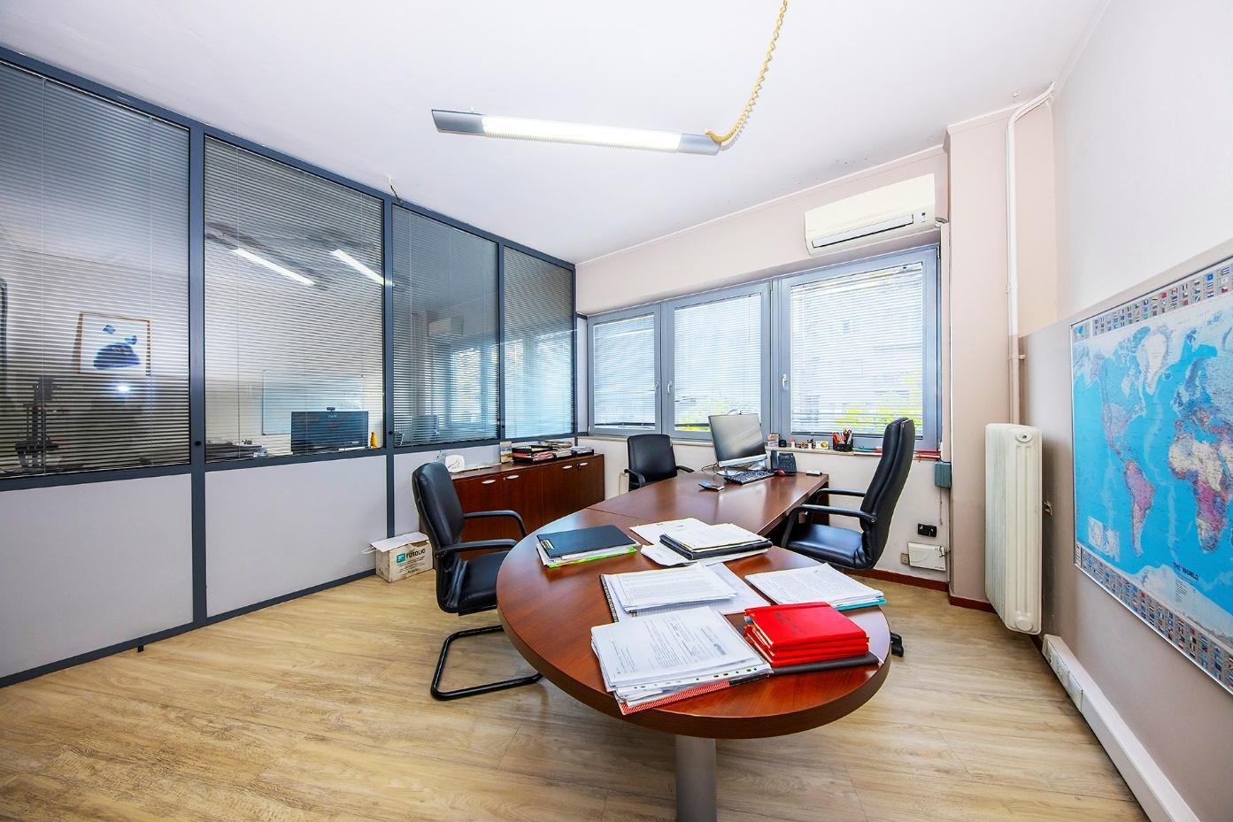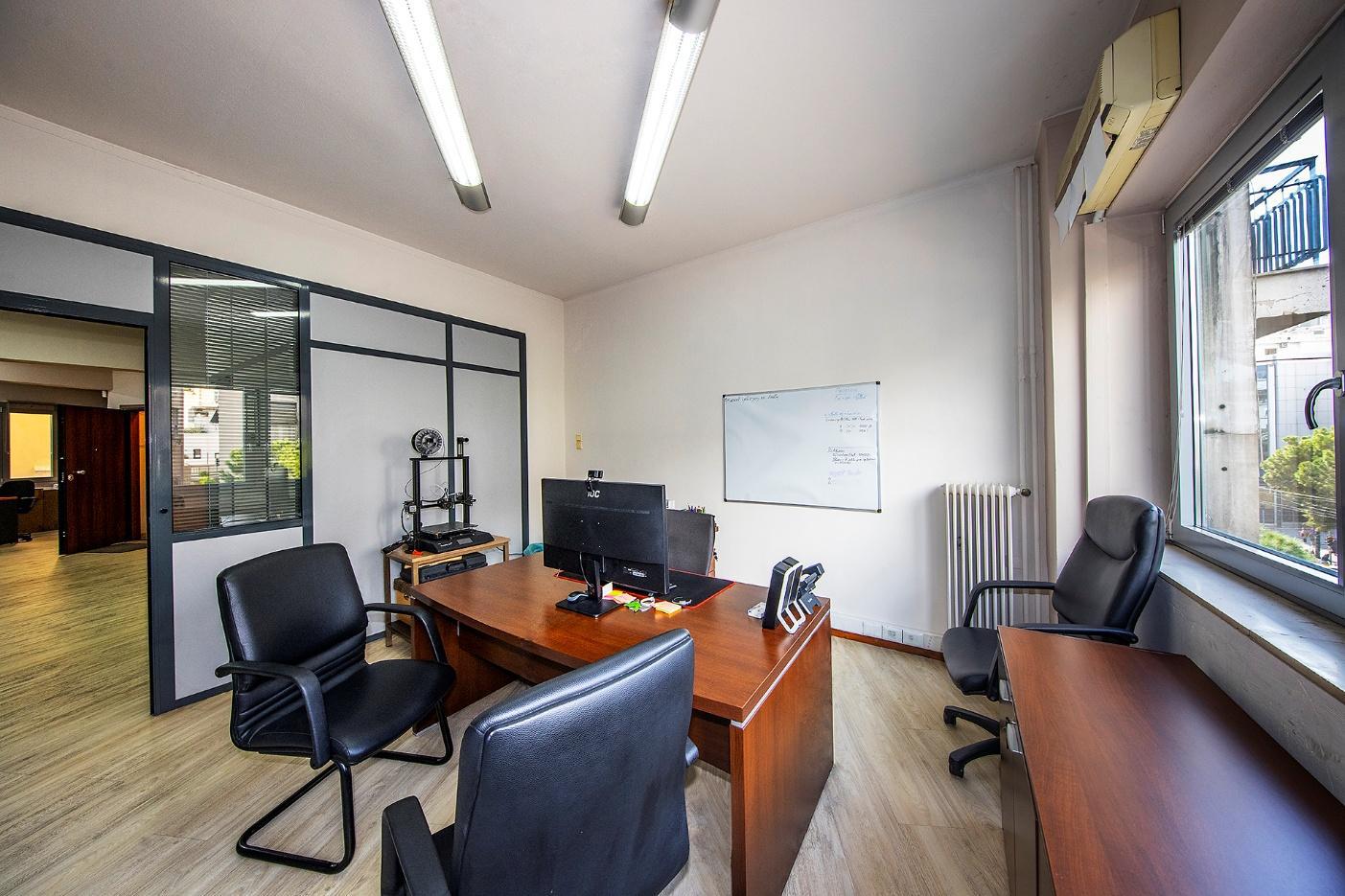 The property is front-facing, airy, and very bright, covering the entire 2nd floor. It consists of two separate office spaces, one (A) large space with an area of 140 sqm which has 2 closed, autonomous offices, a large open office space and a kitchenette, and (B) a smaller space of 57 sqm which has a separate meeting room, an open office space and an outdoor area used for breaks and as a “smoking room”.